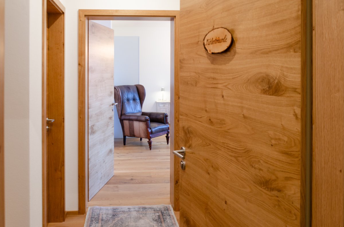 Griaß di und herzlich willkommen in Deinem idyllischen und modernen Zuhause auf Zeit. Am Rande von Wertach liegt die geschichtsträchtige Obere Mühle Wertach. Genau hier, umgeben von der herrlichen Allgäuer Natur, findest Du unsere neue Ferienwohnung "Apartment Mühlenträumle". Die rund 40 Quadratmeter sind hochwertig ausgestattet mit liebevoll handgefertigten Schreinermöbeln, wie einem bequemen Doppelbett und einer gemütlichen Essecke. In der modernen Küche könnt ihr köstliche Gerichte zaubern – gerne auch mit unserem erntefrischen BIO Gemüse vom Mühlenacker. Eine großzügige, begehbare Dusche bringt Wellnesscharakter ins stilvoll gestaltete Bad. Genießt den Blick über unseren herrlichen Mühlengarten auf der Terrasse vor dem Seminarraum oder einem der zahlreichen, liebevoll gestalteten Freisitzen im Mühlengarten.