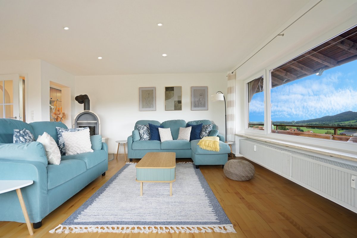Ausstattung und Highlights der Ferienwohnung: - 3 Schlafzimmer, mit Doppelbett, 2 Einzelbetten + 1 Einzelbett, Kleiderschränken und Nachtkästchen - großzügiges modernes Wohnzimmer mit Panoramablick, Deko-Kaminofen - komplett ausgestattete Küche mit Induktionsherd, Backofen, Spülmaschine, Mikrowelle, Kühlschrank mit Gefriermöglichkeit, Kaffeemaschine, Wasserkocher, Toaster.... u.v.m. - gemütliche Essgruppe - Bad mit Badewanne und Dusche, großes Waschbecken - separates WC, Kinder WC-Sitz - Balkon mit Balkonmöbeln und Panoramablick, Strandkorb - freies WLAN (WiFi) - Waschmaschine und Trockner im Waschkeller - parken im Carport, 1. von rechts - Fahrräder können seitlich am Carport platziert werden. Im Haus besteht keine Abstellmöglichkeit Umgebungsbeschreibung: Wertach, ein beliebter und bevorzugter Ferien- und Urlaubsort am Fuße des Grünten (1783 m) im schönen Allgäu, liegt auf ca. 915 m ü. NHN. Die Ferienwohnung "Panoramaweg" befindet sich in einem ansprechenden und ruhigen Wohngebiet auf einer Anhöhe in Wertach. Von der Wohnung aus haben Sie einen schönen Blick zur Reuter Wanne, zum Buron und zum Wertacher Hörnle, dem Hausberg von Wertach. Die Buron-Lifte und Kinderpark liegen nur wenige Autominuten von Wertach entfernt. Eine gute Anbindung an die A7 über Oy-Mittelberg macht die Anreise mit dem PKW einfach. In Wertach sind der Indoor-Spielpark Allgäulino, der Tennisplatz, die Minigolfanlage, das Freibad Starzlachauen, sowie verschiedene Lokale und Cafés fußläufig zu erreichen. Zudem gibt es im Ort einen E-Bike- und Skiverleih. Am Grüntensee (4km) kann man gut spazieren gehen, baden und radeln. Der Kletterpark am See ist eine Attraktion für Jung und Alt. Im Sommer locken beliebte Wander- und Ausflugsziele, wie z.B. das Wertacher Hörnle, der Grünten und die Berge um Wertach, Jungholz und Oberjoch mit ihren Almen und Hütten. Im Winter sind verschiedene Skigebiete auf unterschiedlichen Höhen gut mit dem Auto zu erreichen: Nesselwang mit Alpspitzbahn (8 km), Oberjoch (13 km) und Oberstdorf mit seiner Nebelhornbahn (40 km). Das Erlebnisbad ABC-Alpspitz-Center in Nesselwang (8 km) macht bei jeder Temperatur Spaß. Das herrliche Tannheimer Tal mit seinem vielseitigen Sommer- und Winterangebot liegt nur ca. 20 min über die österreichische Grenze entfernt. Auch die umliegenden Städte wie Kempten (Römerausgrabungen, Shopping) oder Füssen (Schloss, kulturelle Veranstaltungen) sind in etwa 40 Autominuten leicht zu erreichen. Zu den Königsschlössern Neuschwanstein und Hohenschwangau sind es nur ca. 40 min Autofahrt. Der Bodensee liegt etwa 1 Stunde entfernt. Im Winter sind verschiedene Skigebiete auf unterschiedlichen Höhen gut mit dem Auto zu erreichen: Nesselwang mit Alpspitzbahn (8 km), Oberjoch (13 km) und Oberstdorf mit seiner Nebelhornbahn (40 km). In der Umgebung gibt es auch mehrere Rodelbahnen und Loipen.